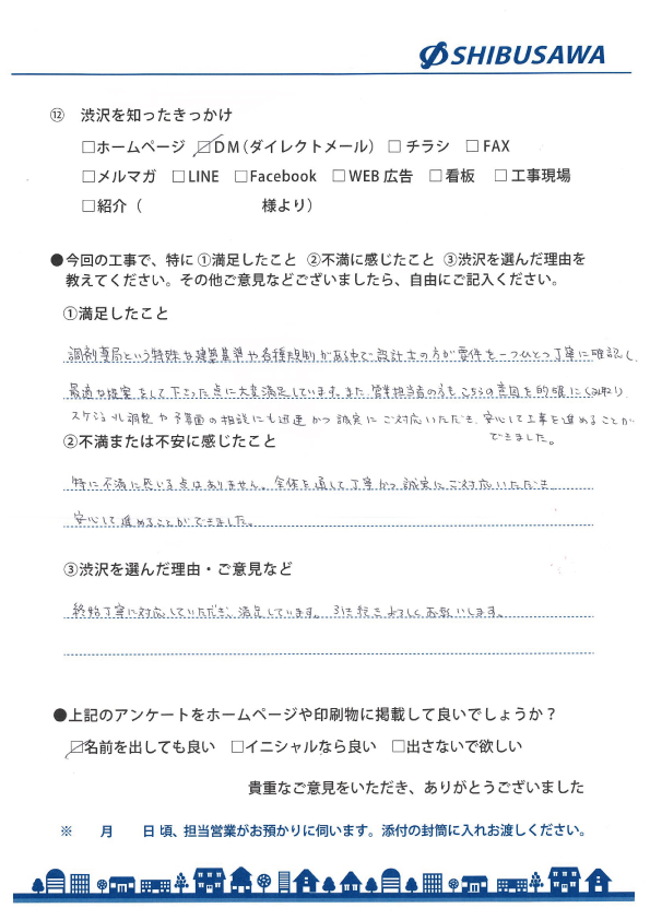 営業・設計担当の対応にご満足くださり嬉しい限りです。