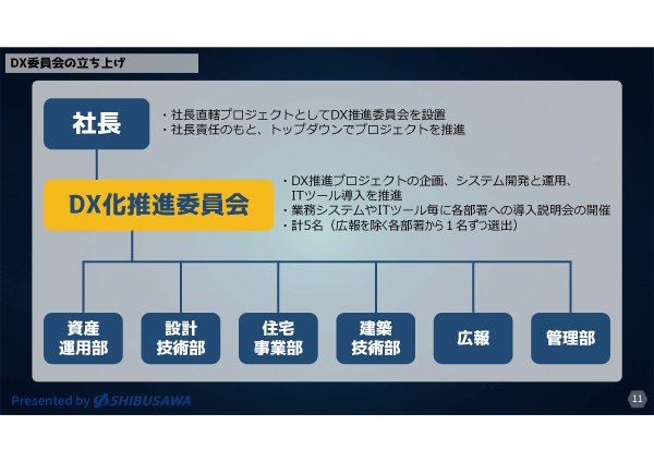 社⾧直轄という形で DX 化推進委員会を立ち上げました。